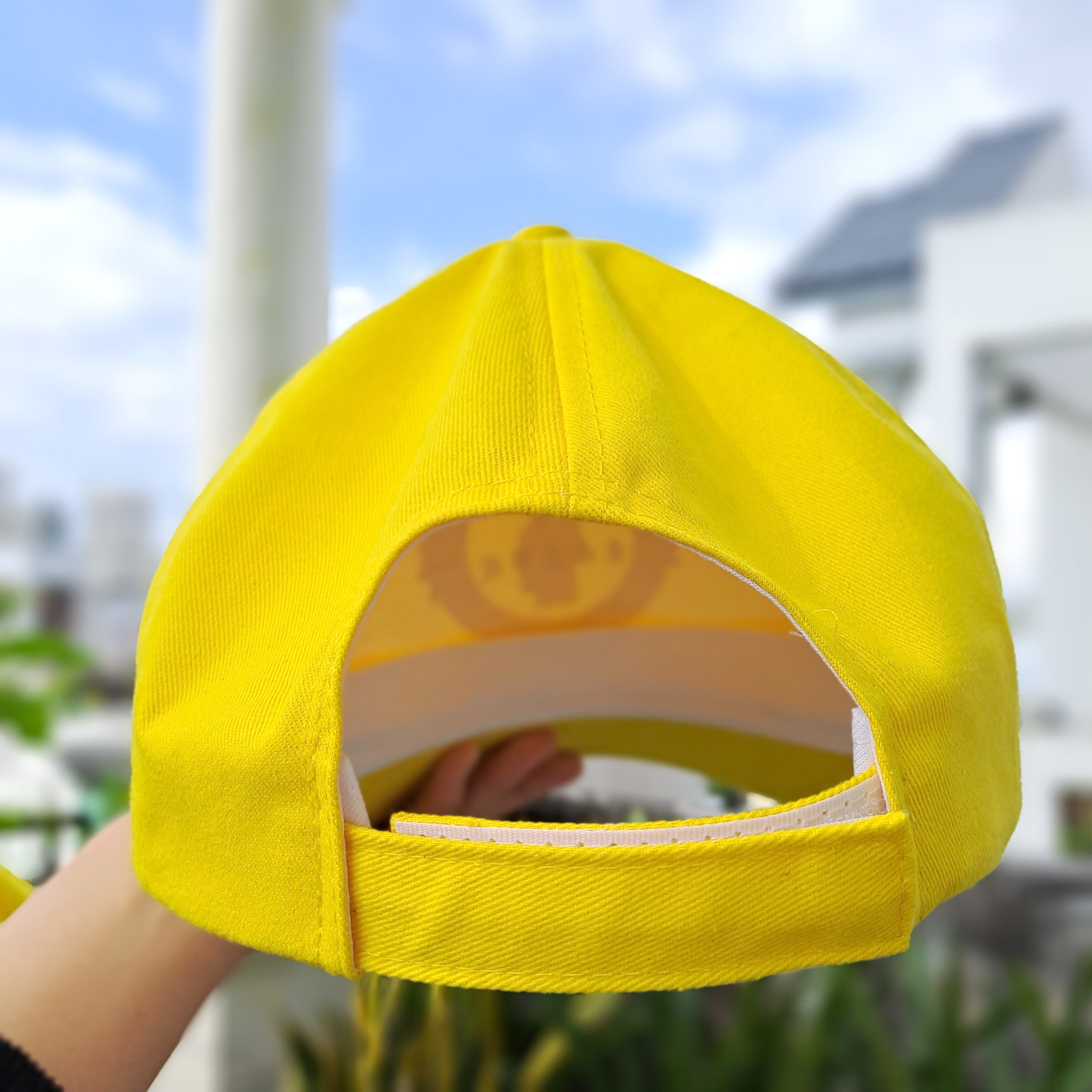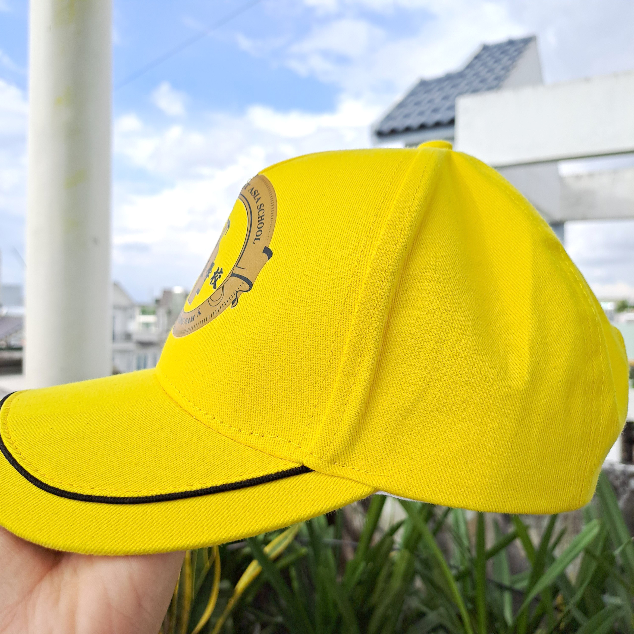 Nón lưỡi trai có tăng đơ điều chỉnh độ rộng của nón để vừa kích cỡ đầu được thực hiện theo hình thức dán. Tiện lợi, dễ dụng. Với màu vàng phối lai đen trước vành, màu sắc tươi mới, năng động cùng logo in ở trước nón nổi bật lên thương hiệu trường.